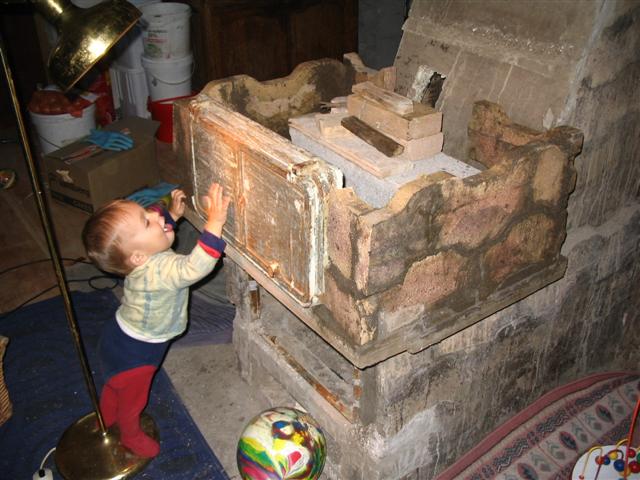 • kachel;de vuurplaats