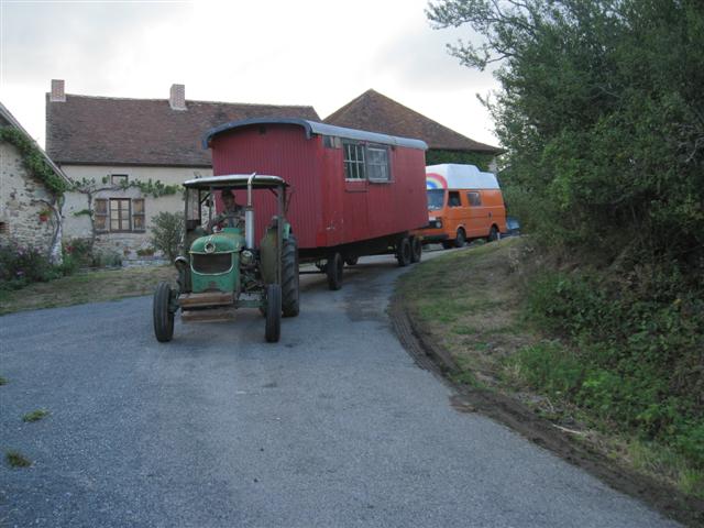 • de rode wagen wordt naar de trailer gebracht voor vervoer van nl. naar fr.
